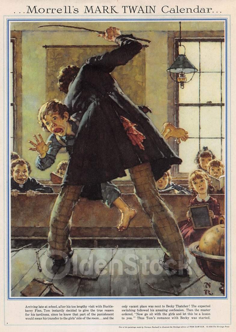Tom Sayer Late for School Whipping Vintage Norman Rockwell Art Morrell Calendar Poster 1946