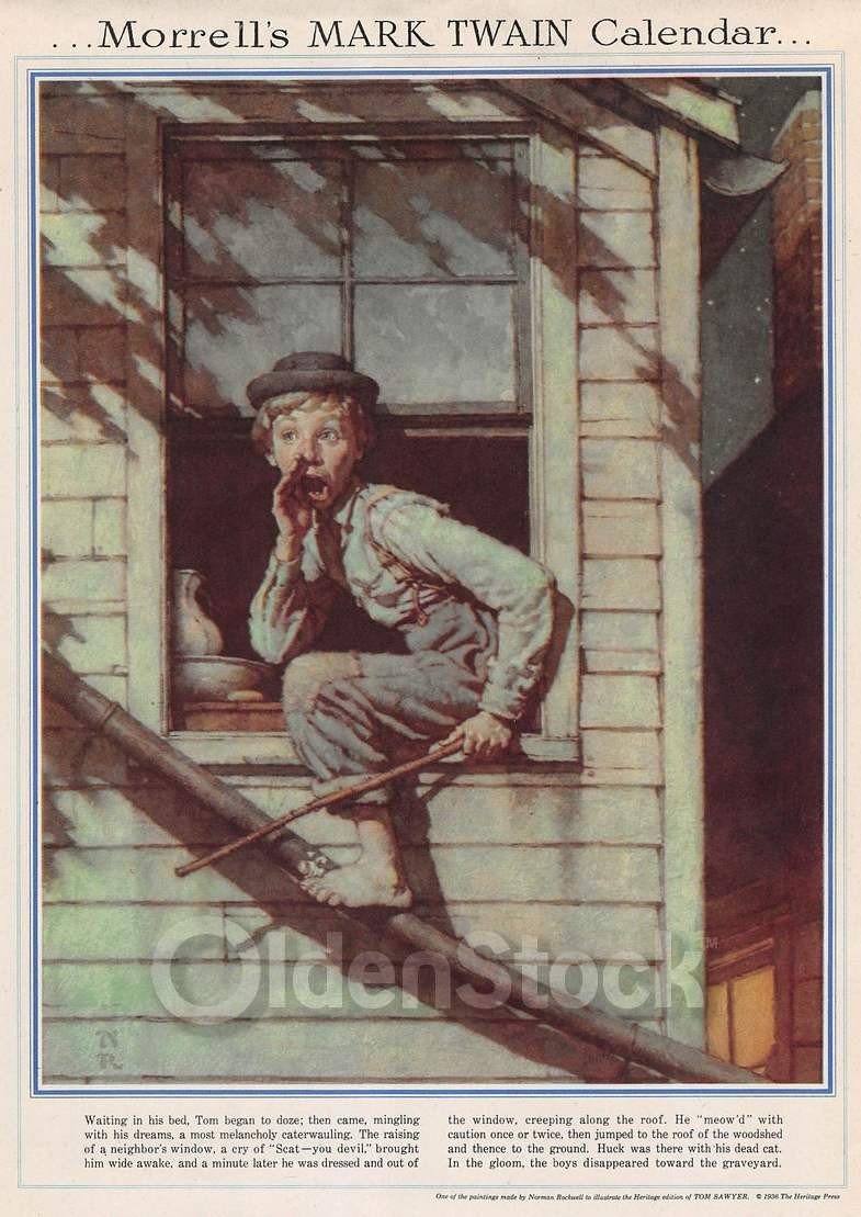 Huck Finn & Tom Sayer Sneaking Out Vintage Norman Rockwell Art Morrell Calendar Poster 1946