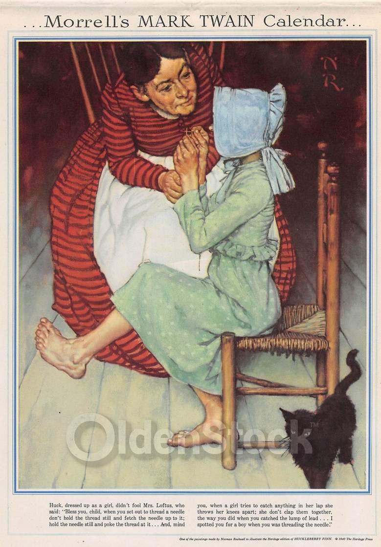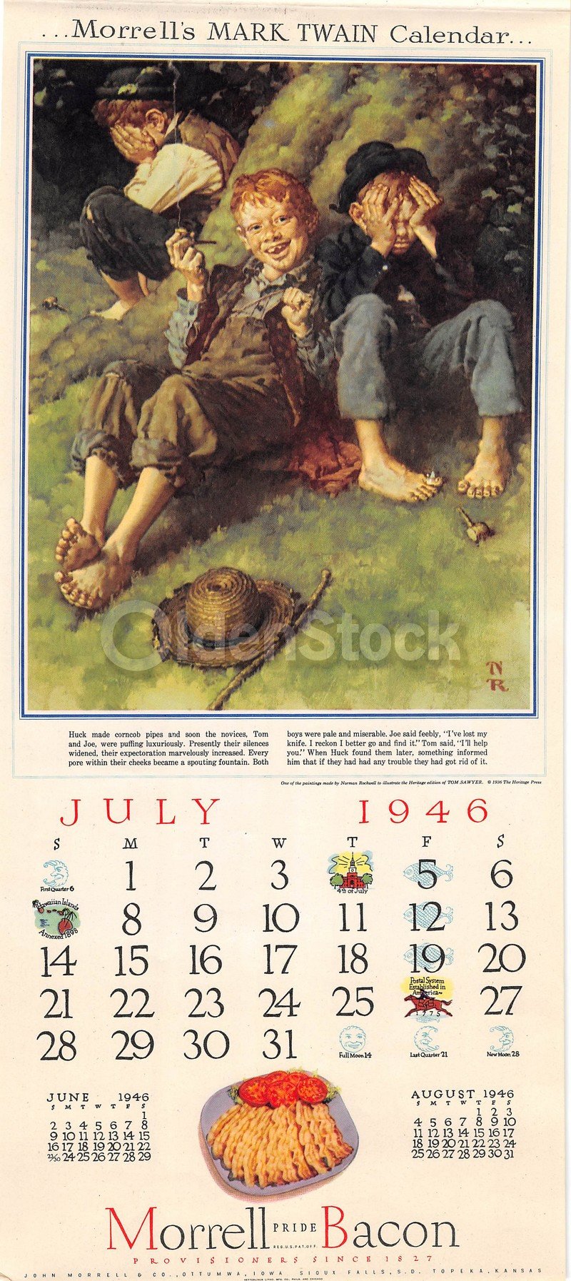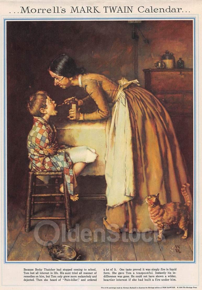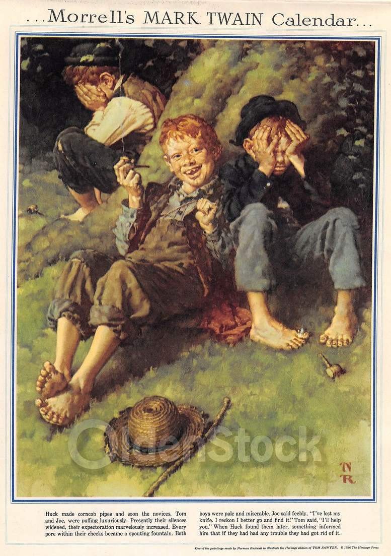 Tom Sawyer & Huck Finn Vintage Norman Rockwell Art Morrell Calendar Poster 1946