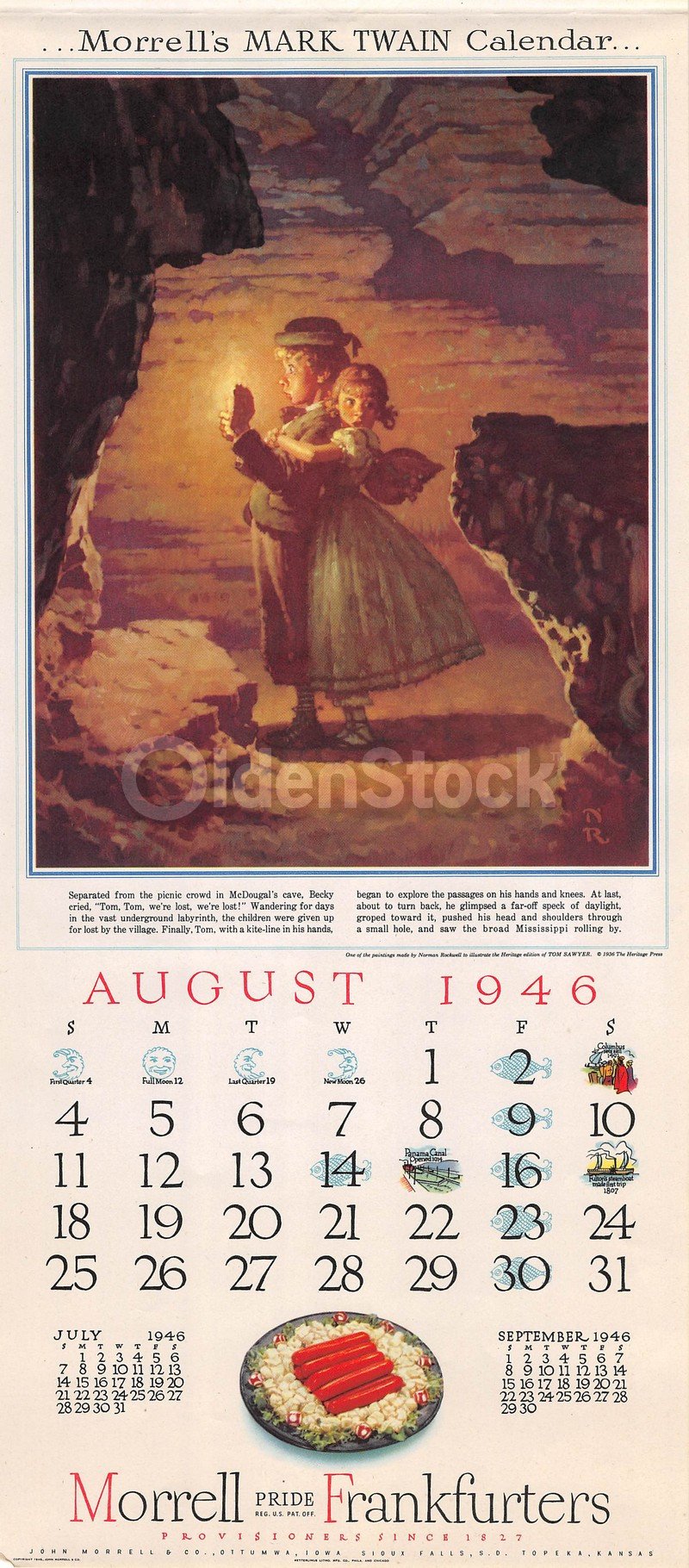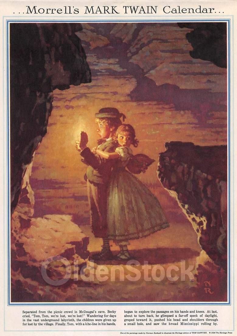 Tom Sawyer & Becky Lost Vintage Norman Rockwell Art Morrell Hotdogs Calendar Poster 1946