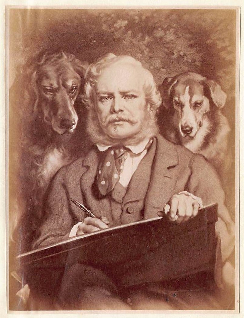 Edwin Henry Landseer Connoisseurs Dog Painting Antique Albumen Print Photo c.1900