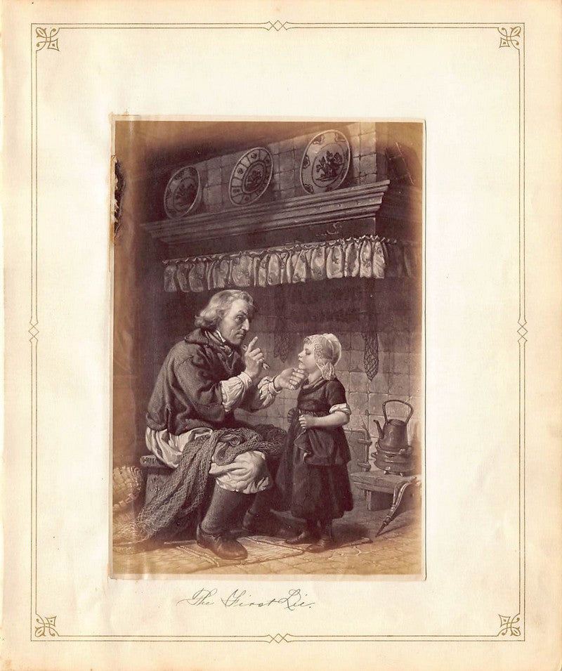 Rudolf Jordan 'The First Lie' Painting Antique Albumen Print Photo c.1900