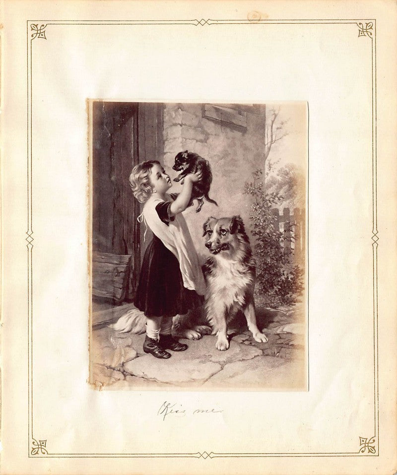 George Augustus Holmes Dog and Puppy Painting Antique Albumen Print Photo c.1900