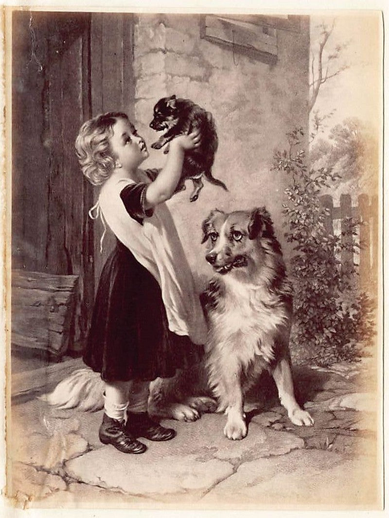Ludwig Knaus Handful of Kittens Painting Antique Albumen Print Photo c.1900