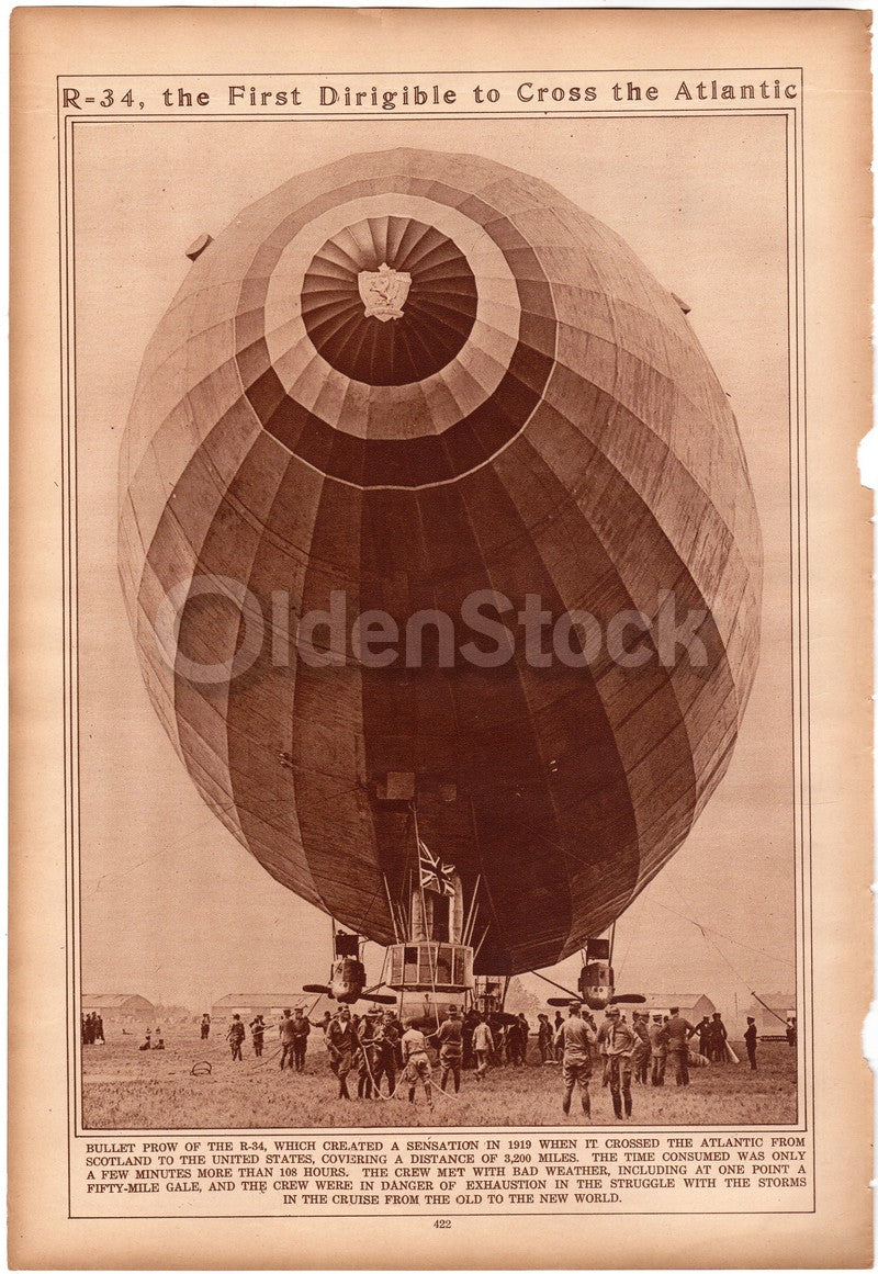 R34 Airship Dirigible Atlantic Crossing WWI Antique News Photo Print