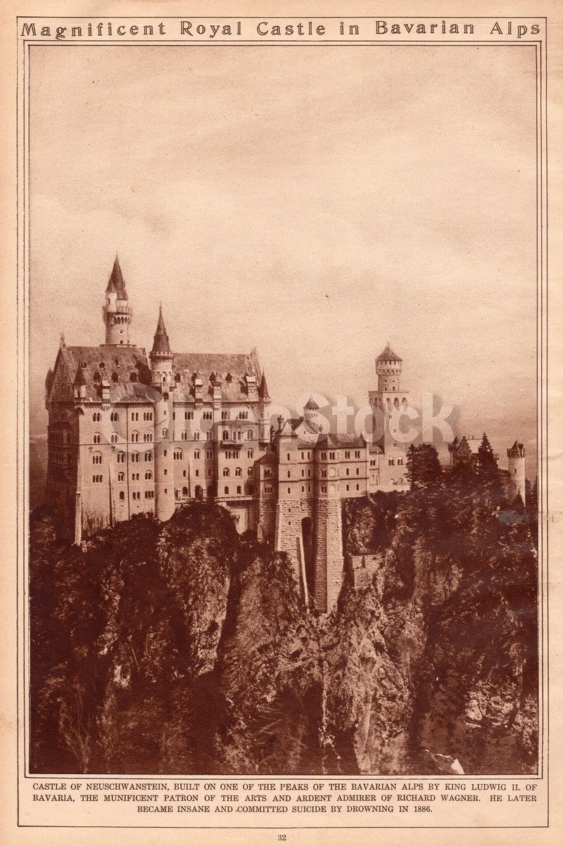 Castle Neuschwanstein Germany King Ludwig II Antique News Photo Poster Print 1921