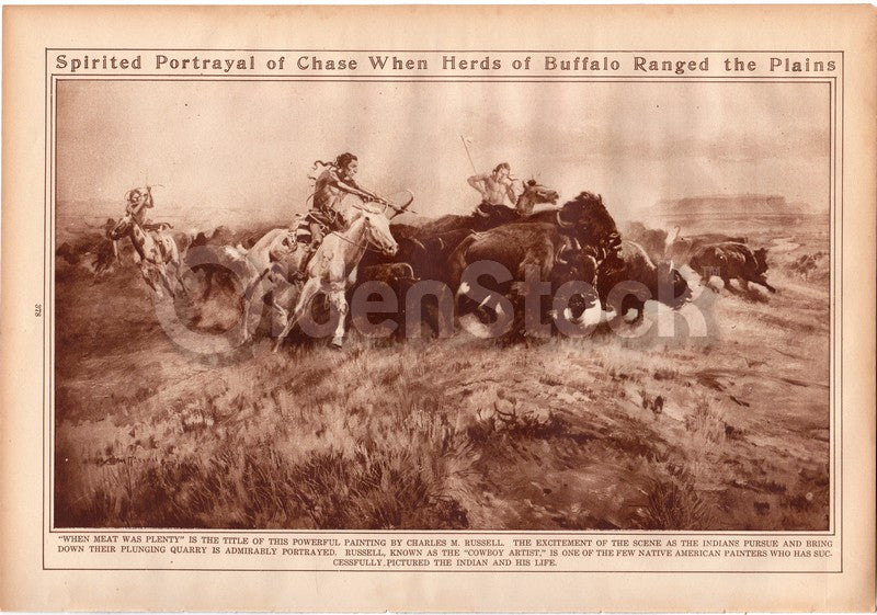 When Meat Was Plenty Native American Indian Art Print by Charles Russell 1921