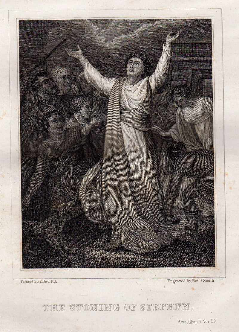 The Stoning Martyrdom of Stephen Antique Religious Bible Engraving Print 1846