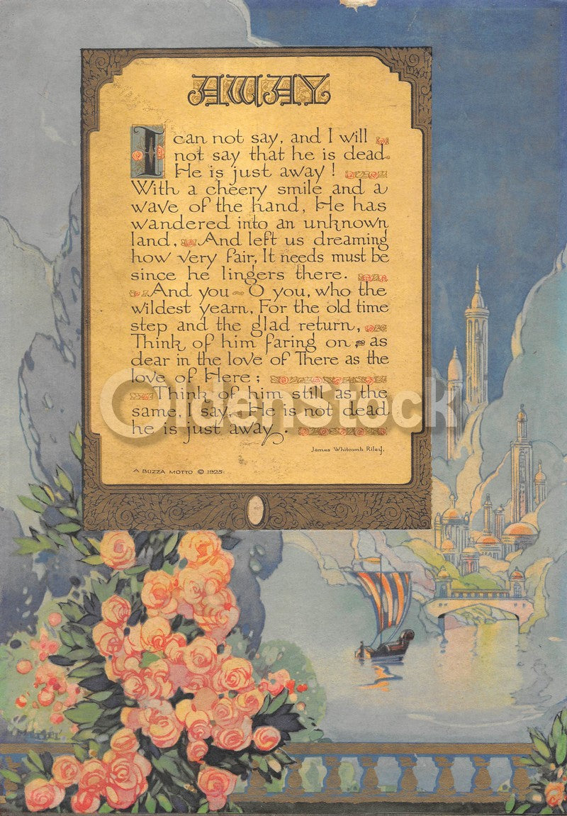 Away Poem James Whitcomb Riley Antique Art Deco Poetry Print