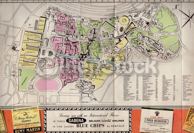 Sabena Belgian Airlines Brussels World's Fair Map Vintage Advertising Brochure
