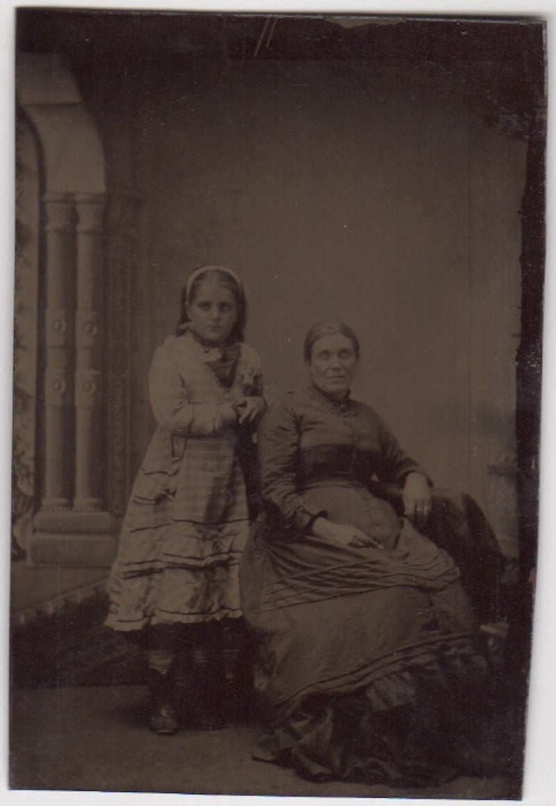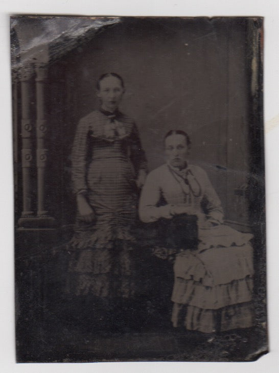 Mother & Daughter in Best Dresses Fine Antique Tintype Photo