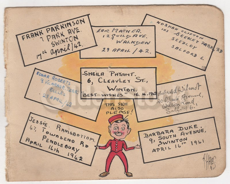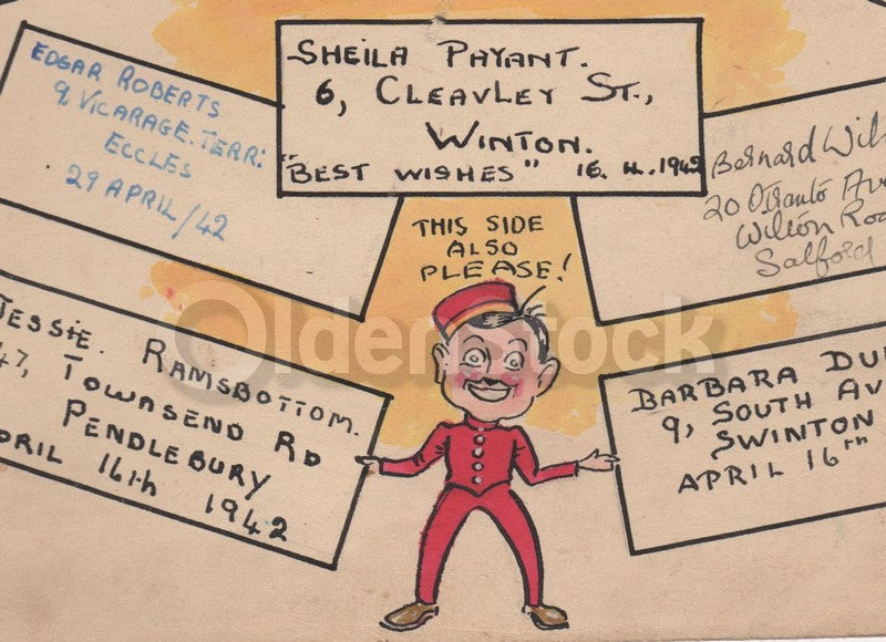 Manchester Bellhop Illustration Art Original Antique Ink and Watercolor Drawing 1942