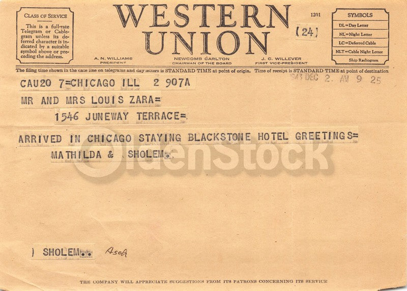 Sholem Asch Polish Jewish Dramatist Author Vintage Telegram 1943