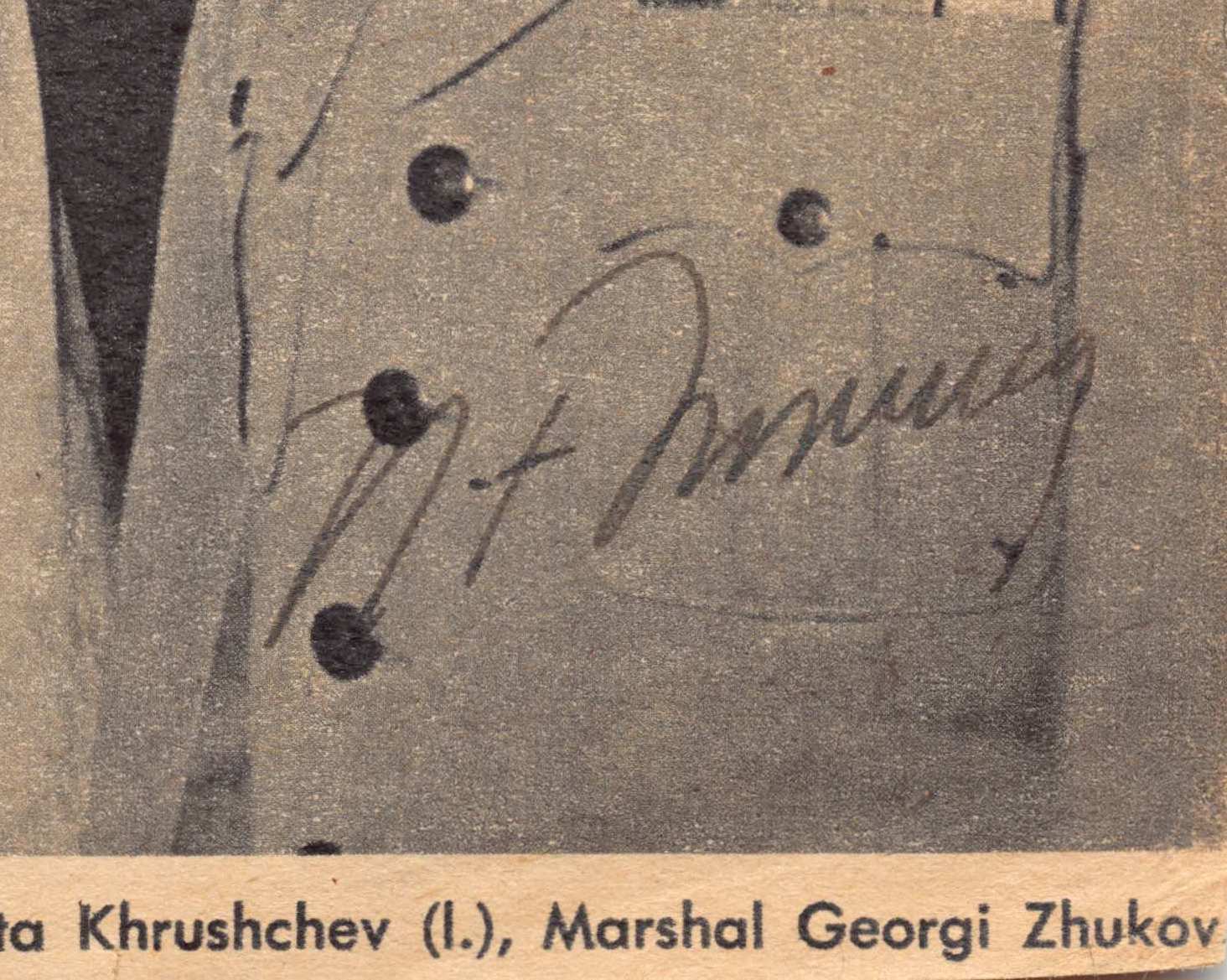 Autograph Signed News Clipping standing with Nikita Khrushchev