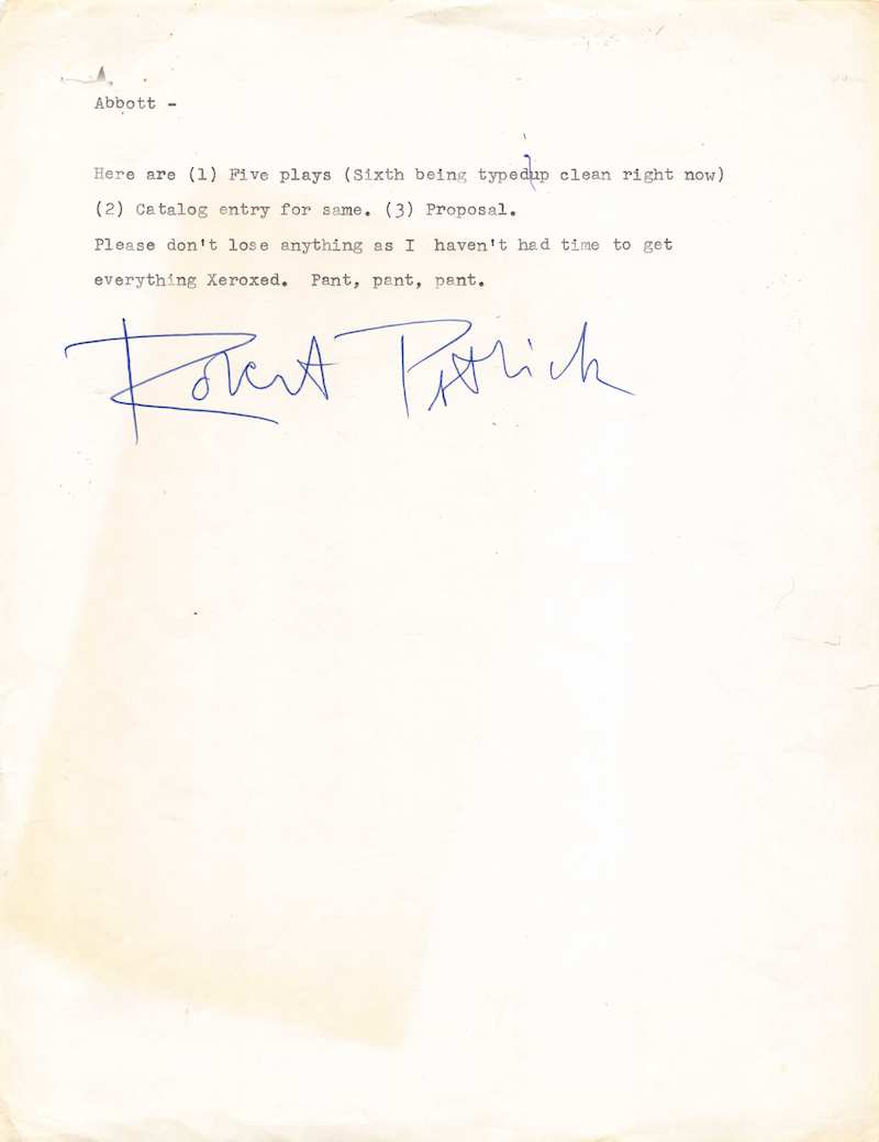 Robert Patrick Broadway Playwright Autograph Signed Memo Letter
