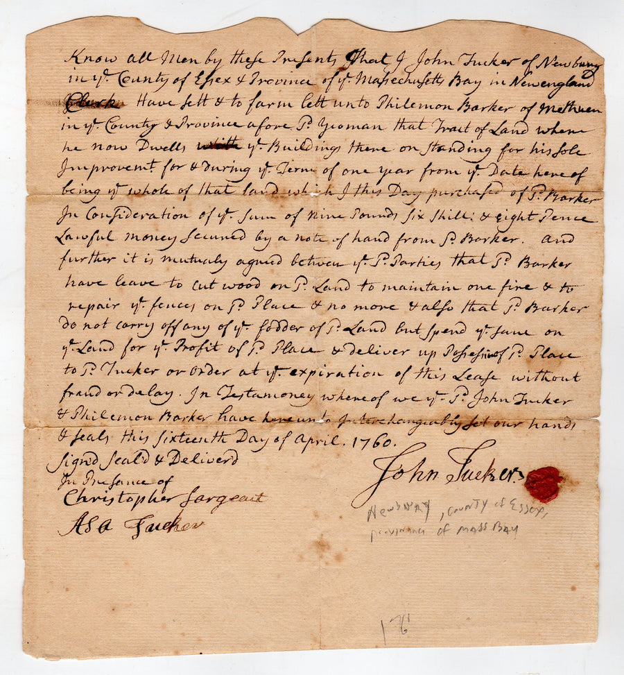 John Tucker Newbury Massachusetts Bay Pastor Antique Autograph Signed Letter