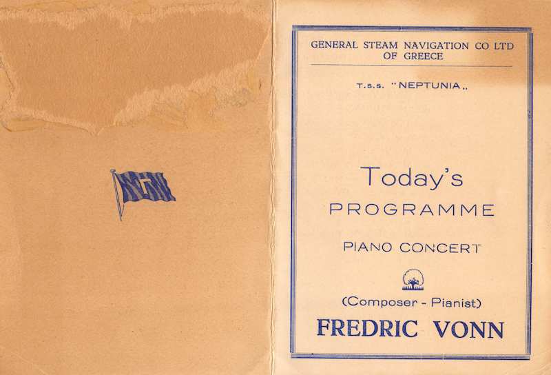 Frederic Vonn Pianist Composer Musician Autograph Signed Cruise Ship Program