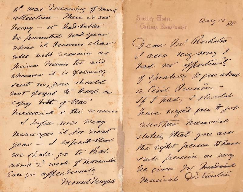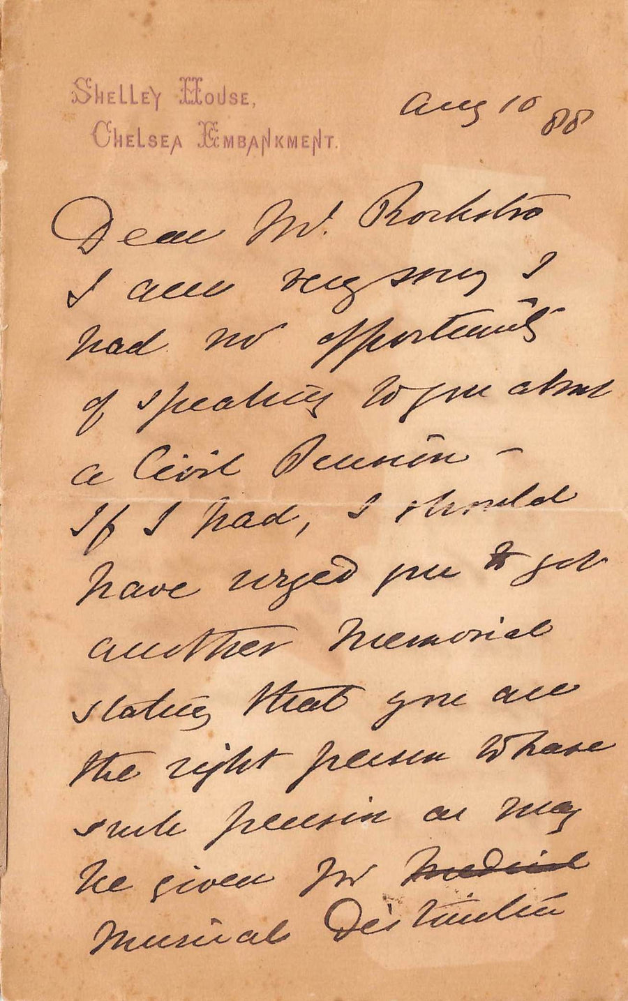 Shelley House Chelsea Embankment London Antique Theatre Letter 1888