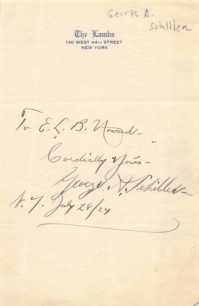 George Schiller Broadway Theatre Stage Actor New York Autograph Signature 1924