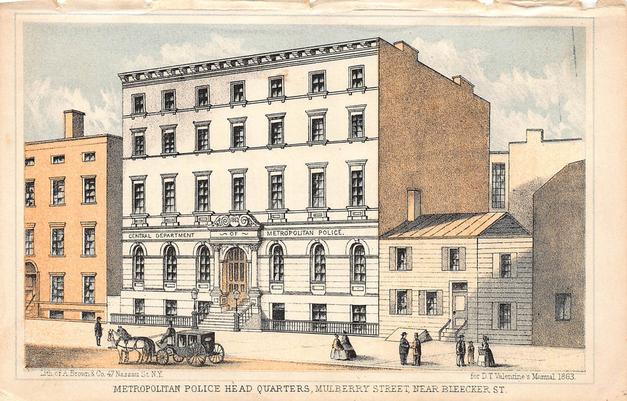 New York Metropolitan Police Station Antique Color Engraving Print 1863