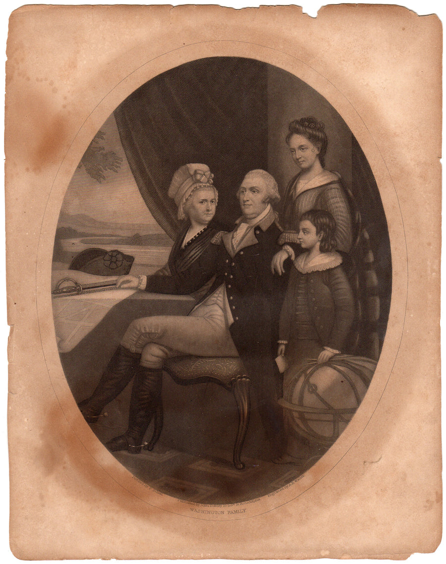 George Washington Martha and Family Antique Engraving Print by A. B. Walter