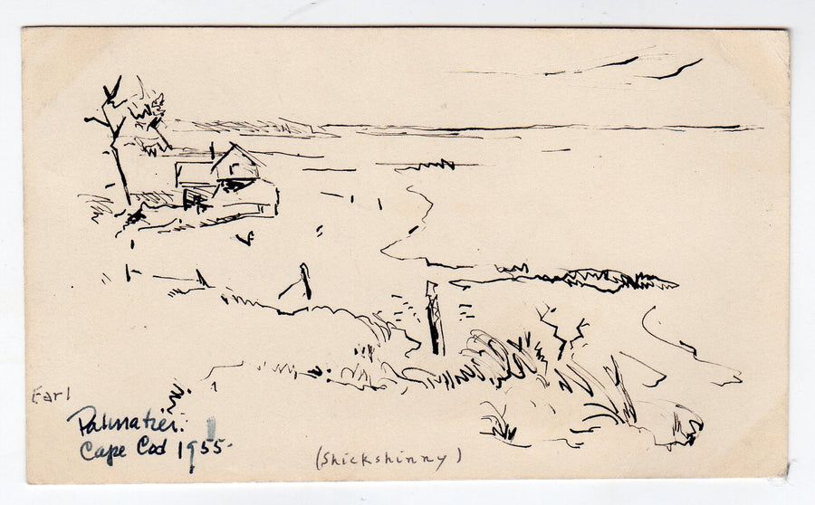 Earl Palmatier Original Cape Cod Massachusetts Ink Sketch Drawing 1955