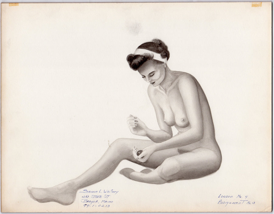 Vintage Nude Portrait Watercolor Painting Study on board by Saima Whitney