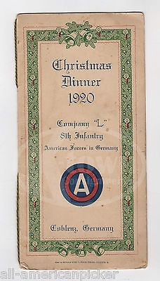 WWI 8th Infantry American Forces in Germany Vintage Christmas Dinner Menu 1920