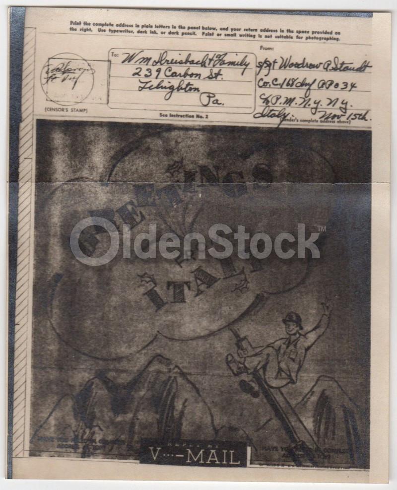 US Artillery Forces in Italy Vintage WWII Graphic Art V-Mail Letter