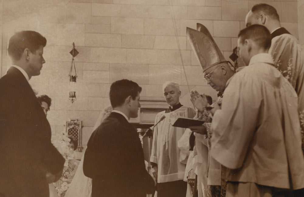 Ted & John F. Kennedy Cardinal Spellman Catholic Wedding Vintage Press Photo
