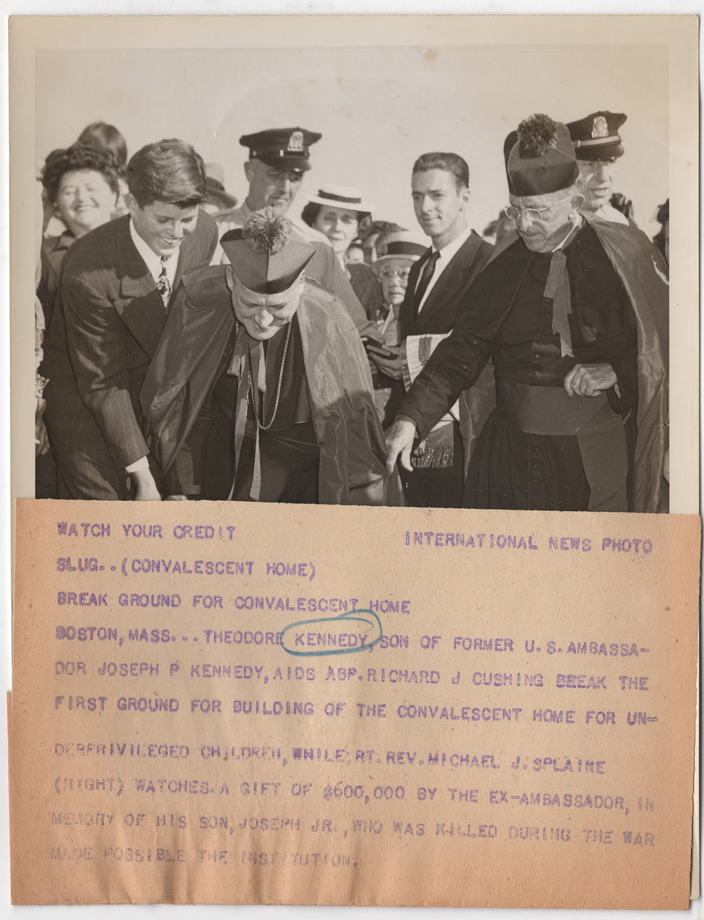 Ted Kennedy & Archbishop Cushing Boston Childrens Home Vintage Press Photo 1947
