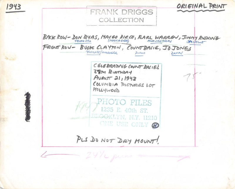 Count Basie 38th Birthday Party Vintage Frank Driggs Collection Promo Photo 1943