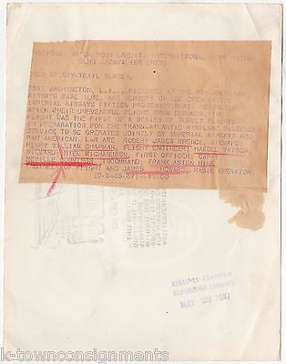 Pan American Airway Pilot Neville Cummings Transatlantic Flight Press Photo 1937