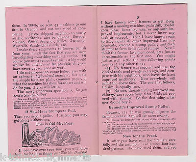 BENNETT STUMP PULLER INVENTION ANTIQUE GRAPHIC ADVERTISING LETTERHEAD & BOOKLET 1890s
