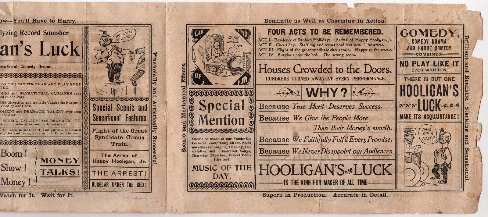 VAUDEVILLE THEATRE STAGE COMEDY ANTIQUE BROADSIDE ADVERTISING FLYER