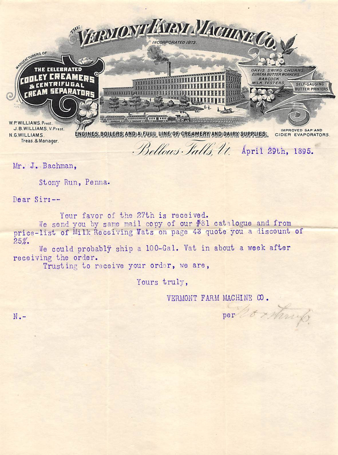 VERMONT FARM MACHINE BELLOWS FALLS VERMONT FARM EQUIPMENT ANTIQUE GRAPHIC ADVERTISING LETTERHEAD