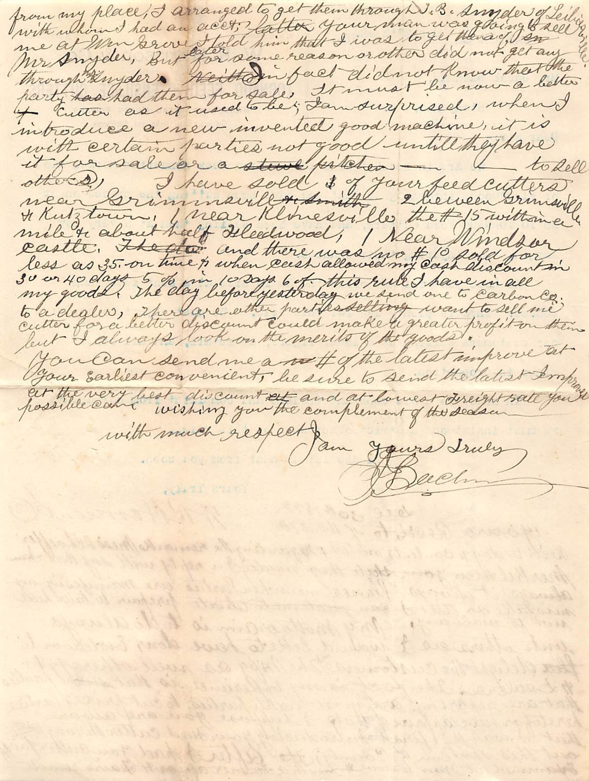 W. R. HARRISON CANTON OHIO TORNADO FEED CUTTERS ANTIQUE ADVERTISING LETTERHEAD 1892