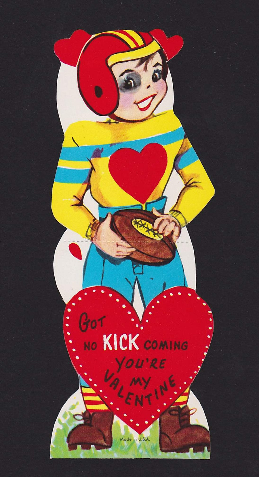 Cute Boy Football Player In Uniform Vintage Valentine's Day Greeting Card