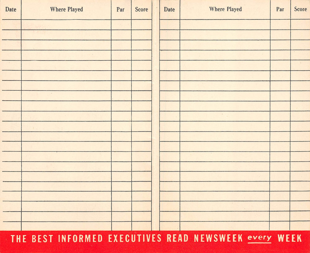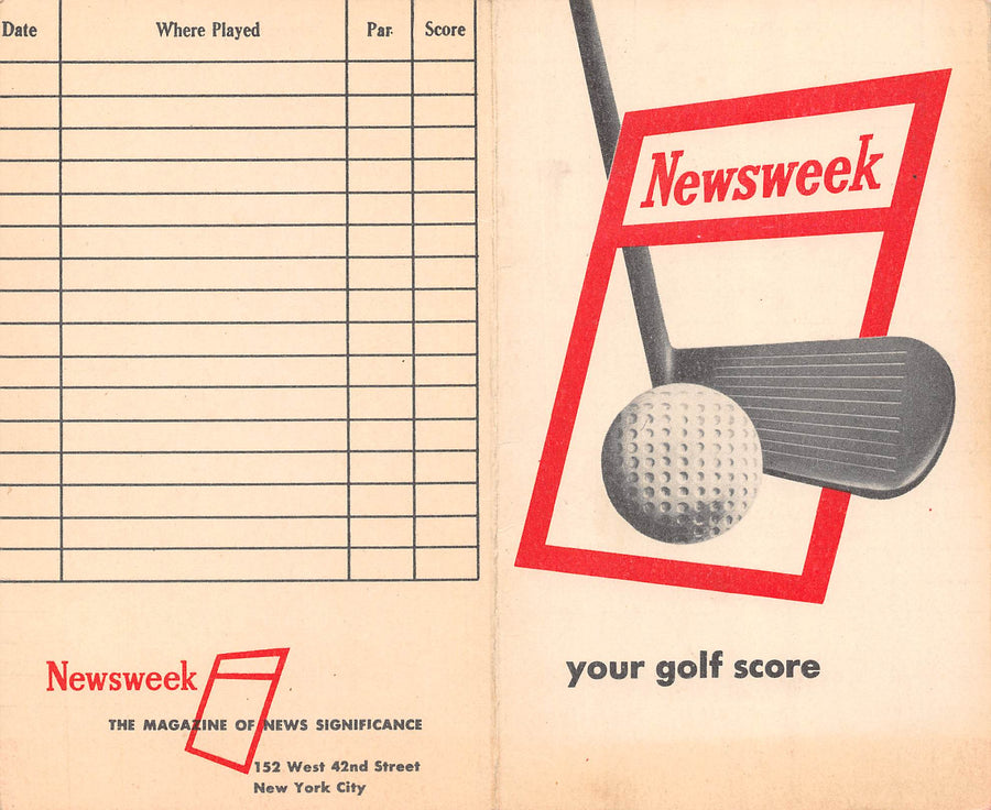Newsweek Magazine Vintage Graphic Advertising Unused Golf Score Card