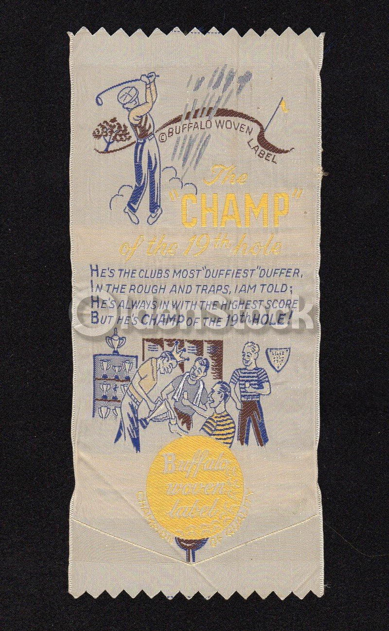 Golf Champion Buffalo Woven Label Vintage Golfer Humor Novelty Award Ribbon